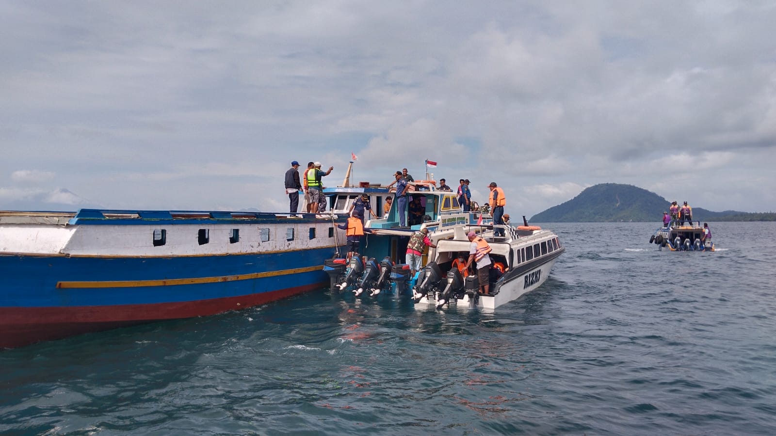 Ke-2. Speed boat yang sudah dimuat penumpang dengan kapasitas yang sudah disesuaikan bergerak dari dermaga speed boat pelabuhan jailolo menuju titik labuh kapal dengan jarak 0,8 NM dan menempuh waktu 5 – 10 menit. Setelah mentranfer penumpang naik, speed boat dapat mengangkut penumpang/barang yang turun dari kapal. Proses tranfer penumpang dilakukan melalui kapal kayu sebagai kapal penghubung menuju sisi tambung kapal KM Dorolonda dimana tangga kapal diturunkan.